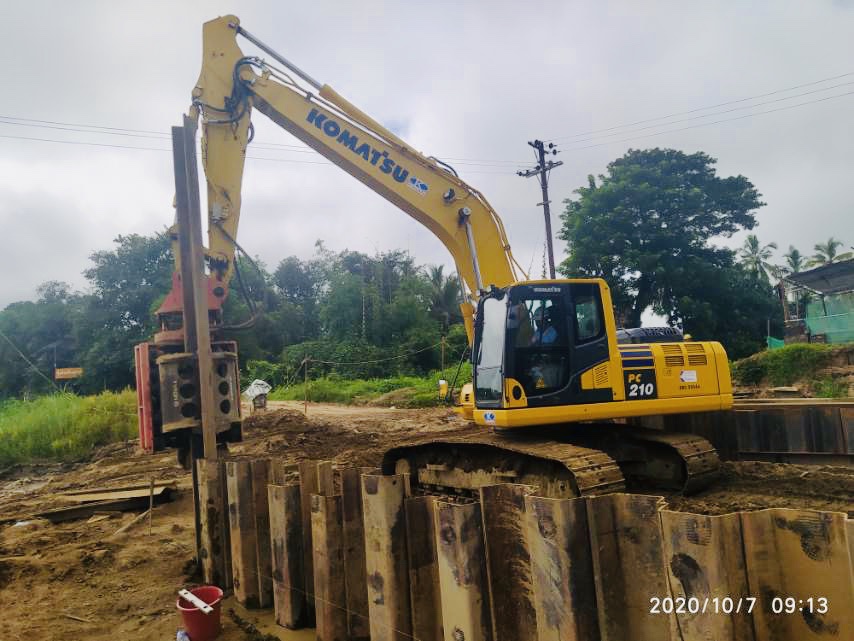 Driving of sheet piles is being carried out at many sites overseas as well. Kinan’s overseas bases have silent pilers, vibrohammers, and Swedish-made side clip type pile drivers MOVAX.